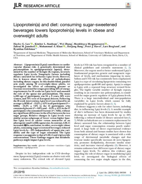 Law, H. G., Stanhope, K. L., Zhang, W., Myagmarsuren, M., Jamshed, Z. M., Khan, M. A., Bang, H., Havel, P. J., Berglund, L., & Enkhmaa, B. (2024). Journal of lipid research, 65(8), 100588.